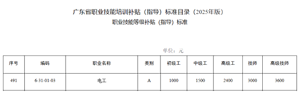 电工职业技能培训补贴,最高可领3600元。